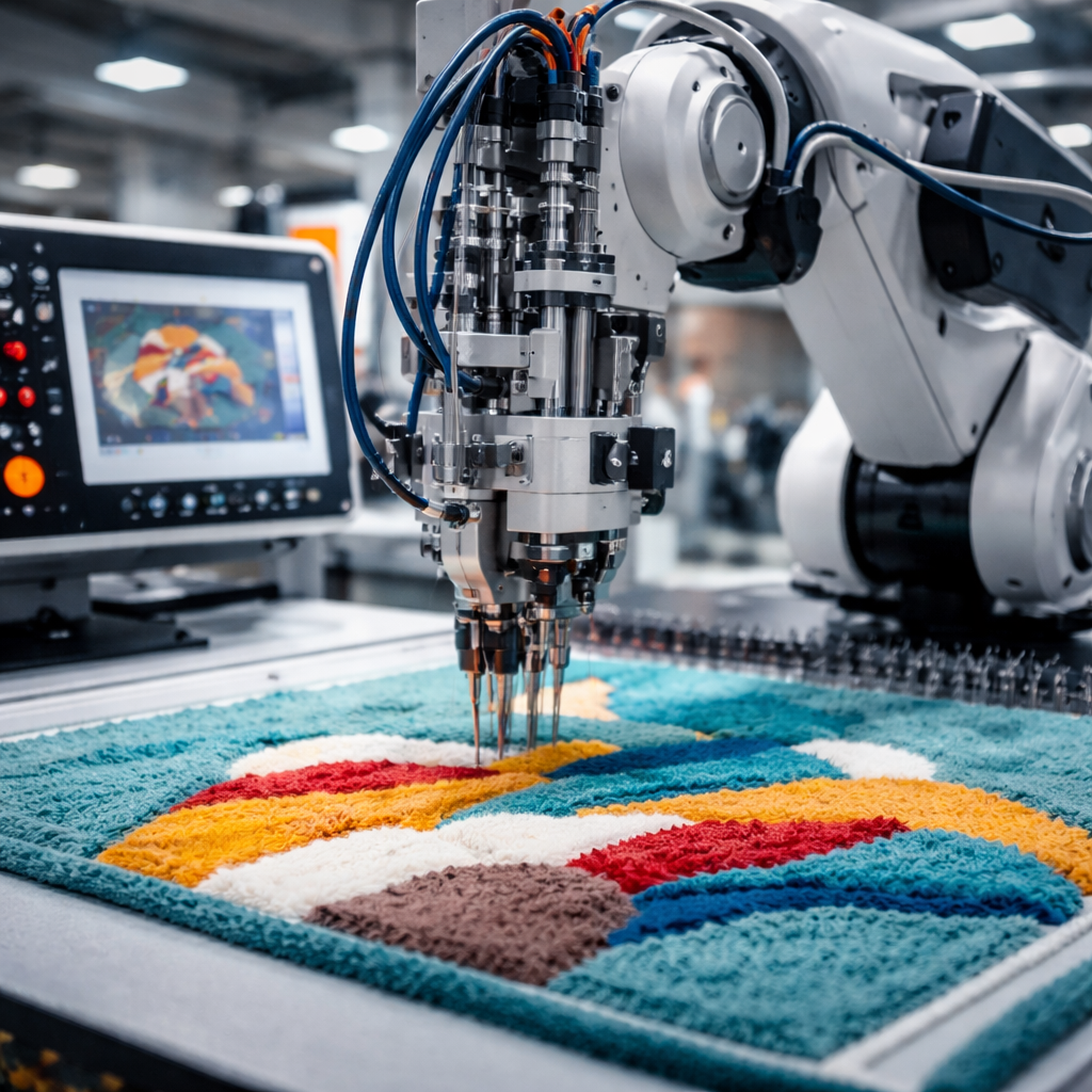 A: A robotic tufting machine program improves precision, speed, flexibility, and consistency. It also helps reduce waste and supports custom carpet production.